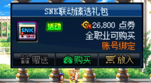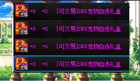 10.拍卖行购买SNK装备套装自选礼盒(1400万金币);
