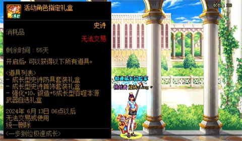 1.创建活动角色,然后领取活动角色成长装备穿上开肝;