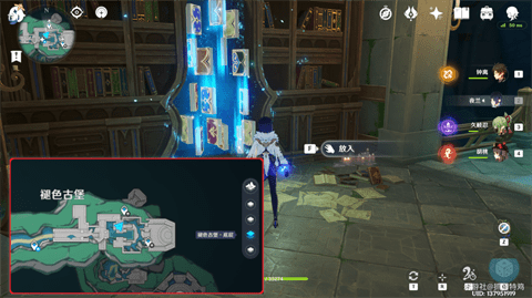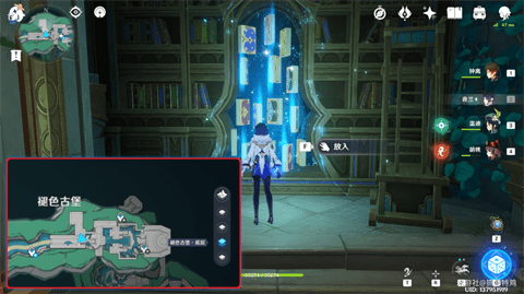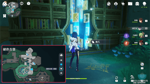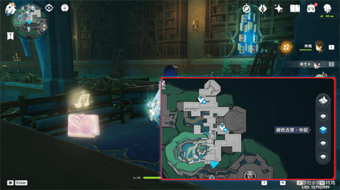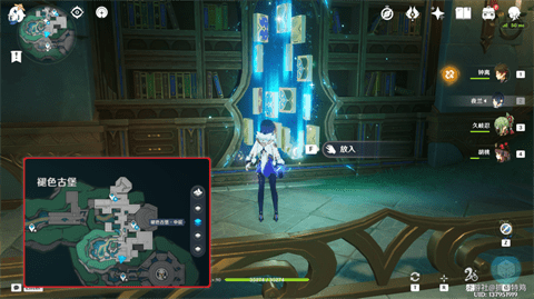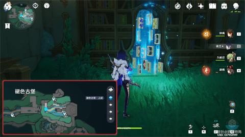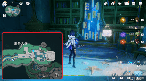 在褪色古堡·中层。图书馆结构建筑的二楼。下图位置打晶体机关。