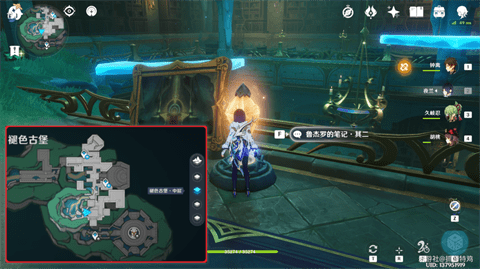 书架后能找到:水神瞳*1,珍贵的宝箱*1,宝箱中有遗落的曲谱残页·其二