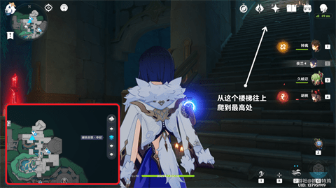 在褪色古堡·陈列馆此处,跟随提示走到顶端。