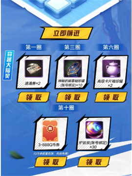奖励:根据玩家完成圈数可以解锁不同的福利,以及抽奖机会。