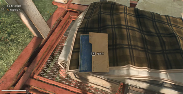 5、在床的角落处,就能看到电击刀,直接拾取即可。