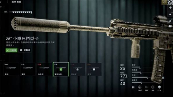 重型加长枪管可显著提升弹速(约900),比突击步枪高出约300,子弹飞行更加稳定,穿透力更强。在中远距离交火时,几乎不受后坐力衰减影响,40米以上交火优势明显。在近距离作战中,依然能保持可控的射速,确保“先开枪者胜”的优势。