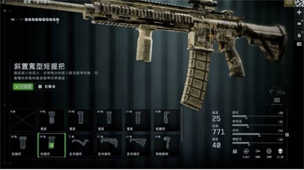 短握把可提升开镜速度,是DRS-IAR在中近战中保持反应速度的关键配件。如果后续计划搭配更大弹匣,可以考虑替换为20点短握把,兼顾机动性与稳定性。两种握把都是必备选项,尤其在应对近战穿点战时,效果显著。