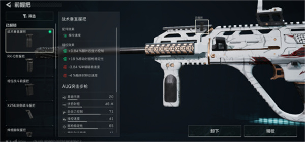 作用:强化垂直后坐力与稳定控制,有效减少AUG在持续射击时的枪身抖动,提升射击精度。