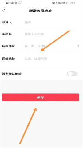 6、在新增收货地址页面中,输入详细的收货地址信息后,点击“保存”按钮完成操作。