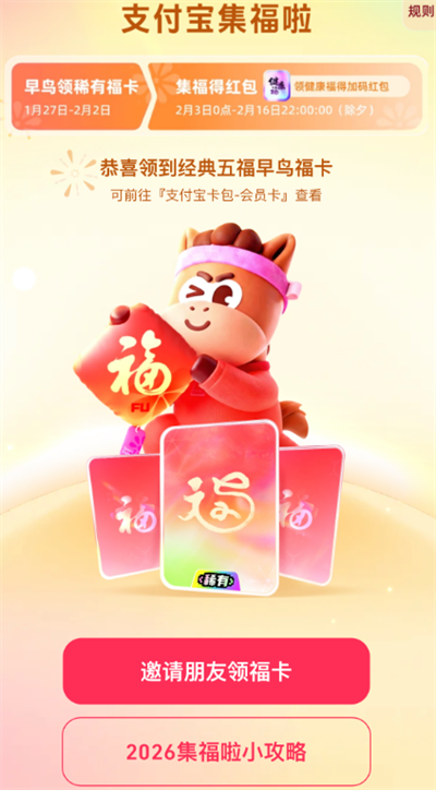 正式集卡阶段,集齐五福即可参与除夕夜红包瓜分。