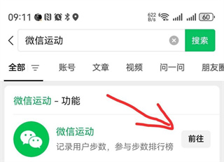 在搜索结果顶部,你会看到带有小脚印图标的“微信运动”入口,点击即可直达功能页面。