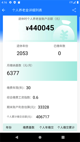 3、并提供详细的养老信息清单。同时还有抵押款的计算、公积金款的计算。