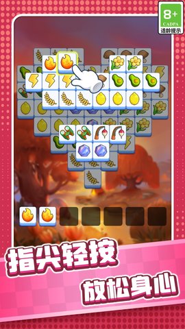 2、玩家会点击方块,让三个图案相同的方块放入盒子中,自动消除。