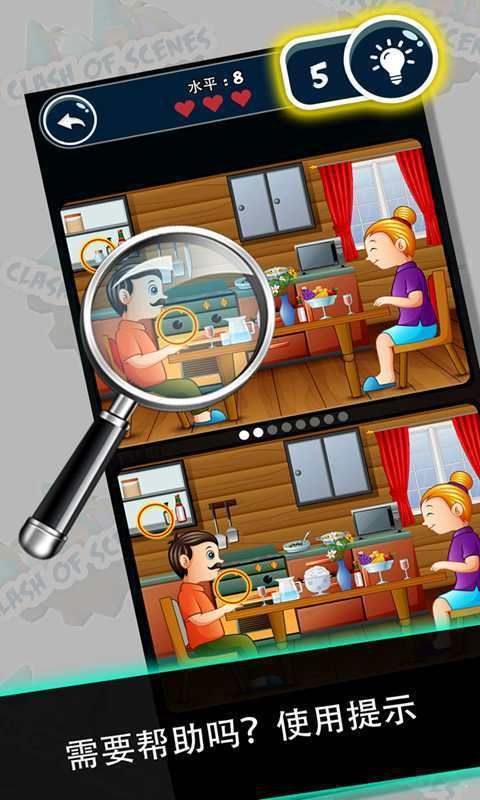 1、场景冲突游戏的玩法非常经典,需要玩家不断探索,找出场景中的不同地方;