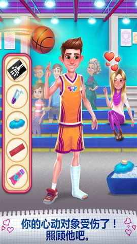 2、你喜欢的人打篮球受伤了!帮助他治愈伤口并签署他的演员阵容