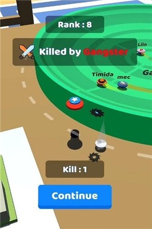 4、游戏中的地图会不断缩小,所有玩家的陀螺会不断变大。在别人变大之前,一边吃经验包一边消灭比你小的陀螺!游戏玩法非常休闲有趣!