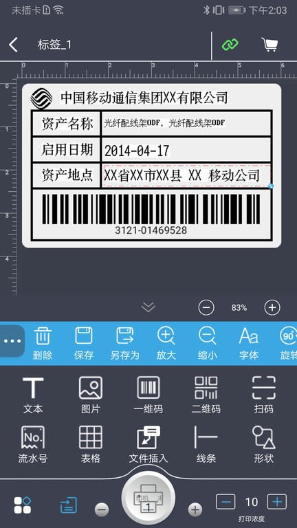 2、支持文字、二维码、条形码、图像、表格、日期的标签打印;
