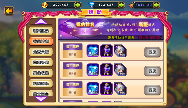 3、积极参与活动每个新区开放都会有多个新区活动。积极参与活动即可获得英雄灵魂石奖励(此类活动完成难度较小)。
