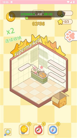1、首先进入游戏界面,点击箱子开始你精彩的收纳之旅。