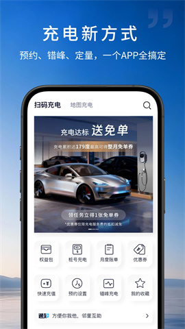 蔚蓝快充app是深圳市蔚蓝电动汽车产业服务有限公司推出的一款便捷的出行应用,专为车主设计,集停车、预约和充电等功能于一体。该软件能够帮助车主快速定位周边的充电桩,并提供在线导航和路线规划,帮助用户轻松完成爱车的充电。用户还可以迅速找到附近的充电点,免去查找电桩的麻烦,同时支持实时查看充电过程和费用信息。