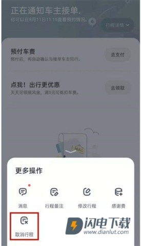 1、若是临时有事要取消行程,打开嘀嗒出行app,进入你的订单页面,直接点击右上角的三个点。在弹出的菜单中,选择“取消行程”,轻松搞定!