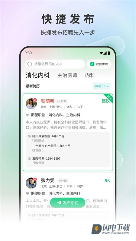 2、覆盖医院各科室近100个细分职位的简历库,提供专业且针对性的人才搜索功能,快速满足企业急聘需求。