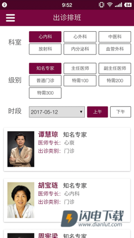 3、查看出诊排班信息,快速了解各时间段的专家排班情况。
