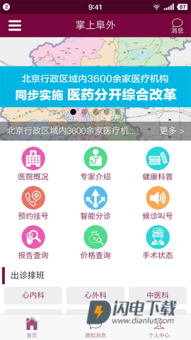 1、全面覆盖医疗服务,包括医院概况、专家介绍、出诊排班、预约挂号等功能。