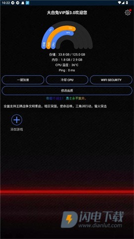 1、首先在本站下载并安装大白兔画质助手,一键打开软件,为你的游戏之旅做准备。