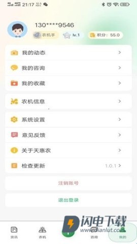 5、在个人中心查看我的动态、收藏、咨询、农机信息及积分,掌控自己的农业生活。