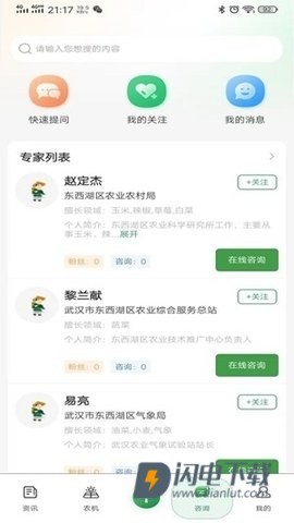3、进入咨询页面,浏览众多农业专家,轻松咨询,解决问题更高效。