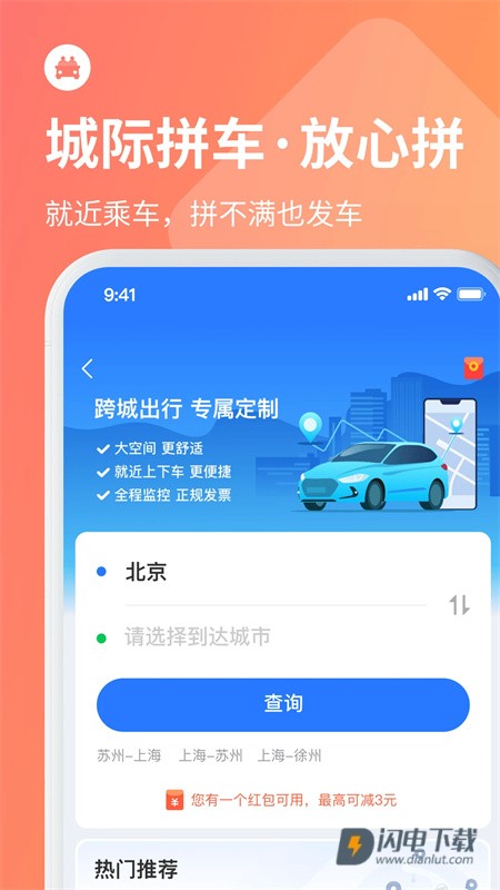 专业提供跨城接送及商务小车服务,提供比大巴更舒适、比快车更划算、比顺风车更安全的出行选择。