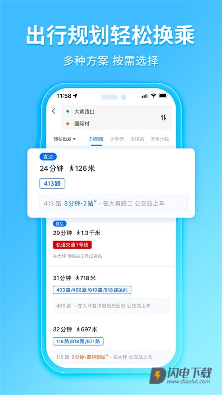 即使身处陌生地,也能轻松获取多种换乘方案。