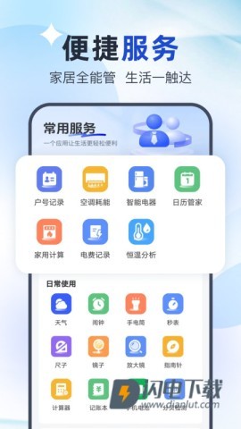 万能智控空调是一款强大的智能空调控制软件,让您随时随地轻松管理家中的空调设备。通过简单的添加与设置,您可以实现远程操控,随时监控空调的能耗、温度变化及噪音水平等。此外软件还整合了天气预报、闹钟、手电筒、秒表等实用工具,方便用户日常使用。快来下载体验吧!