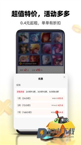 1、租号玩游戏,新用户可获得免费体验券,低价畅玩稀有皮肤和极品账号。一键上号,轻松快捷,绝对让你享受做靓仔的快感。