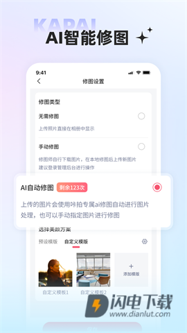 修图速度毫秒级,实时享受修图效果,依托深度学习技术,自动进行像素修正和美颜,提升作品质量。