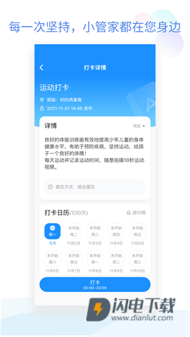 打卡功能非常实用,老师可以通过APP发布打卡通知,学生只需在班级广播中点击打卡,完成每日打卡。
