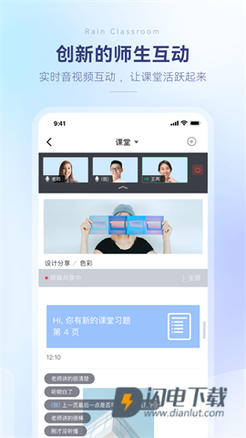 1、实现实时问答互动,反馈学生难点,幻灯片推送及弹幕功能一应俱全。