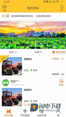 2、每次调配农机干活都要拨打好多电话,现在在App上点一下就能处理。
