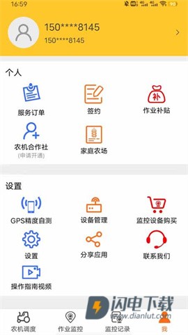 5、返回个人中心可绑定家庭农场、管理设备与申报作业,操作视频与直播辅助更易上手。