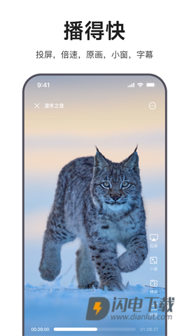 【超清播放】多种视频资源可以一键播放,支持HTTP、HTTPS、FTP、Thunder、磁力链及电驴链接等格式,观看超高清画质,并且支持4倍速播放。