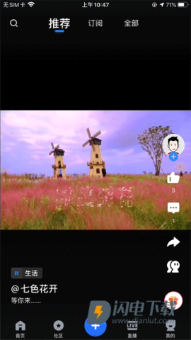 4、点击“全民拍”进入短视频界面,用户可以点赞、评论、转发,还能发布自己的原创内容,增加交流互动。