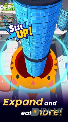 3、尝试吞下你能见到的一切,体验最上瘾的游戏乐趣,享受吞噬与逃脱的快感。