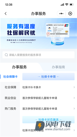 提供社保卡申领流程的指导,便于用户在线申请。