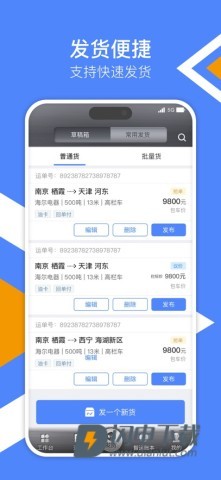 3、货源发布:轻松维护货源信息,一键发布,平台将推送至上千辆闲置货车。