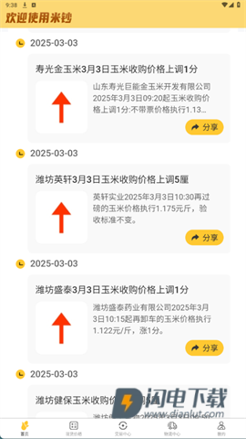 2、用户可以查看玉米最新价格并及时分享精彩信息给好友,确保交易机会共享。