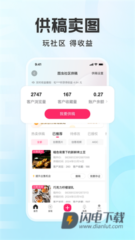 简单有效的供稿与售卖流程,每一张优秀作品都有机会获得利润。