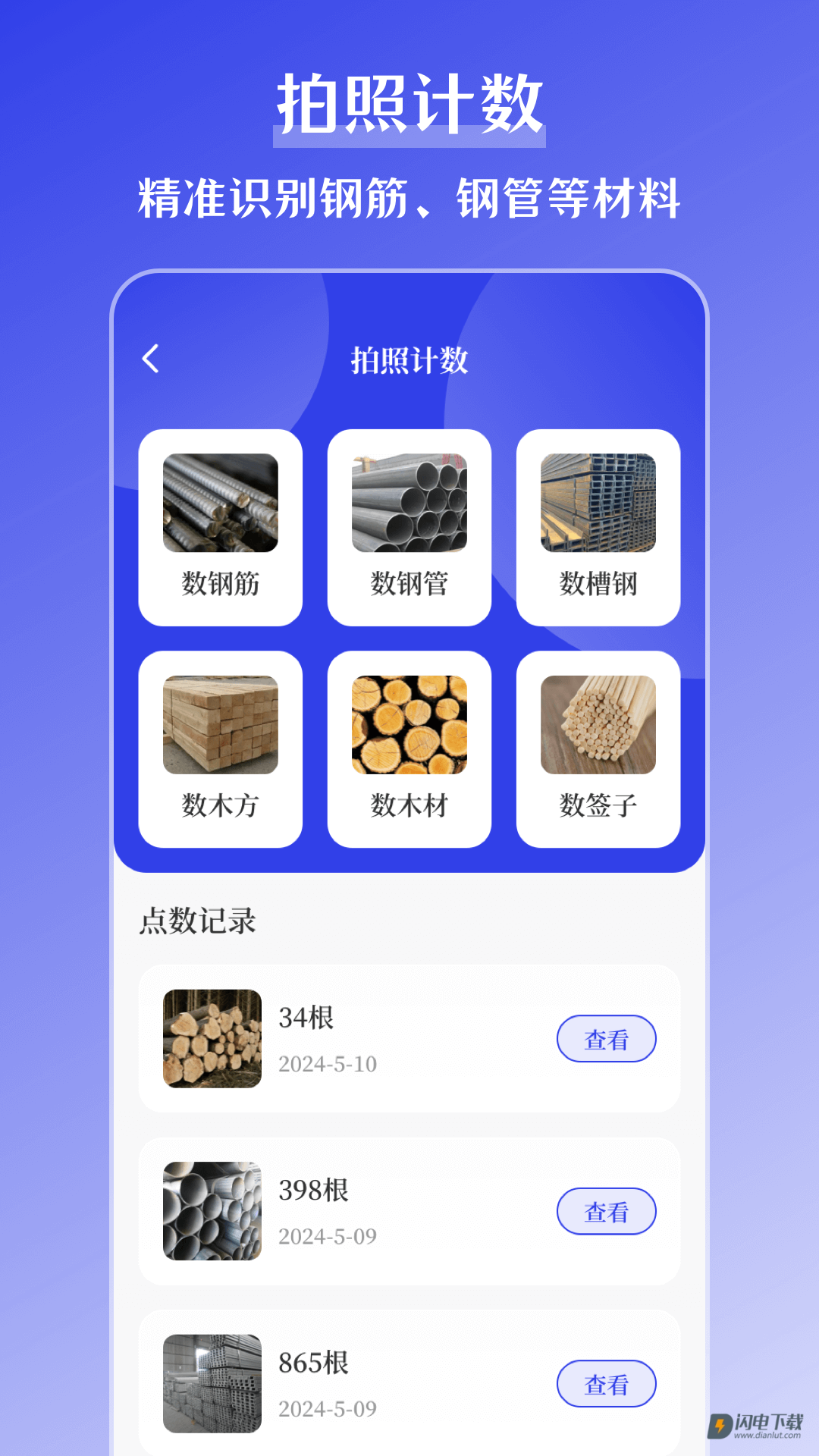4、利用先进图像识别技术的数钢管功能,大幅提升工作效率,内置虚拟尺子及AR测量工具,更让测量变得简单无比,随时随地测量物体,解决现场无工具的难题。