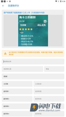 3、在圣遗物评分中,输入名称就能获得详细介绍和评分,助力你游戏旅程。