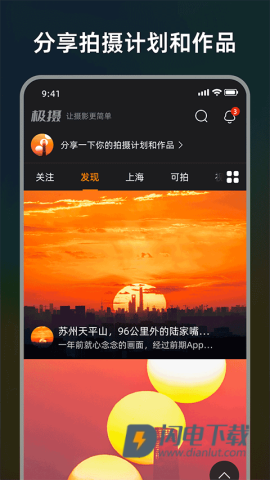 用户可在社区分享摄影作品、拍摄计划和拍摄地点,浏览他人作品,并根据地理位置和兴趣偏好进行交流互动。