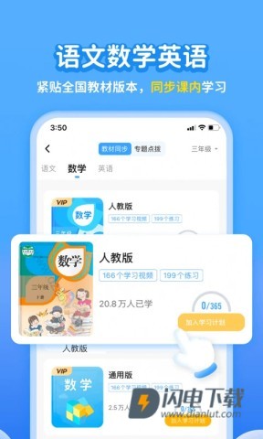 提供语文、数学、英语三科教材同步课程,每日更新,全年365天为孩子定制个性化辅导课程。