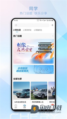 这是一个让奇瑞小奇同学们交流的平台,致力于提供人、车、生活的一站式用户体验。自由而共创的小奇社团,让每个用户都能找到兴趣相投的朋友;通过多渠道,随时随地赚取积分,兑换精美商品及好玩权益。还能够享受自助看车、选车、用车和养车的全面服务,带来更多惊喜。